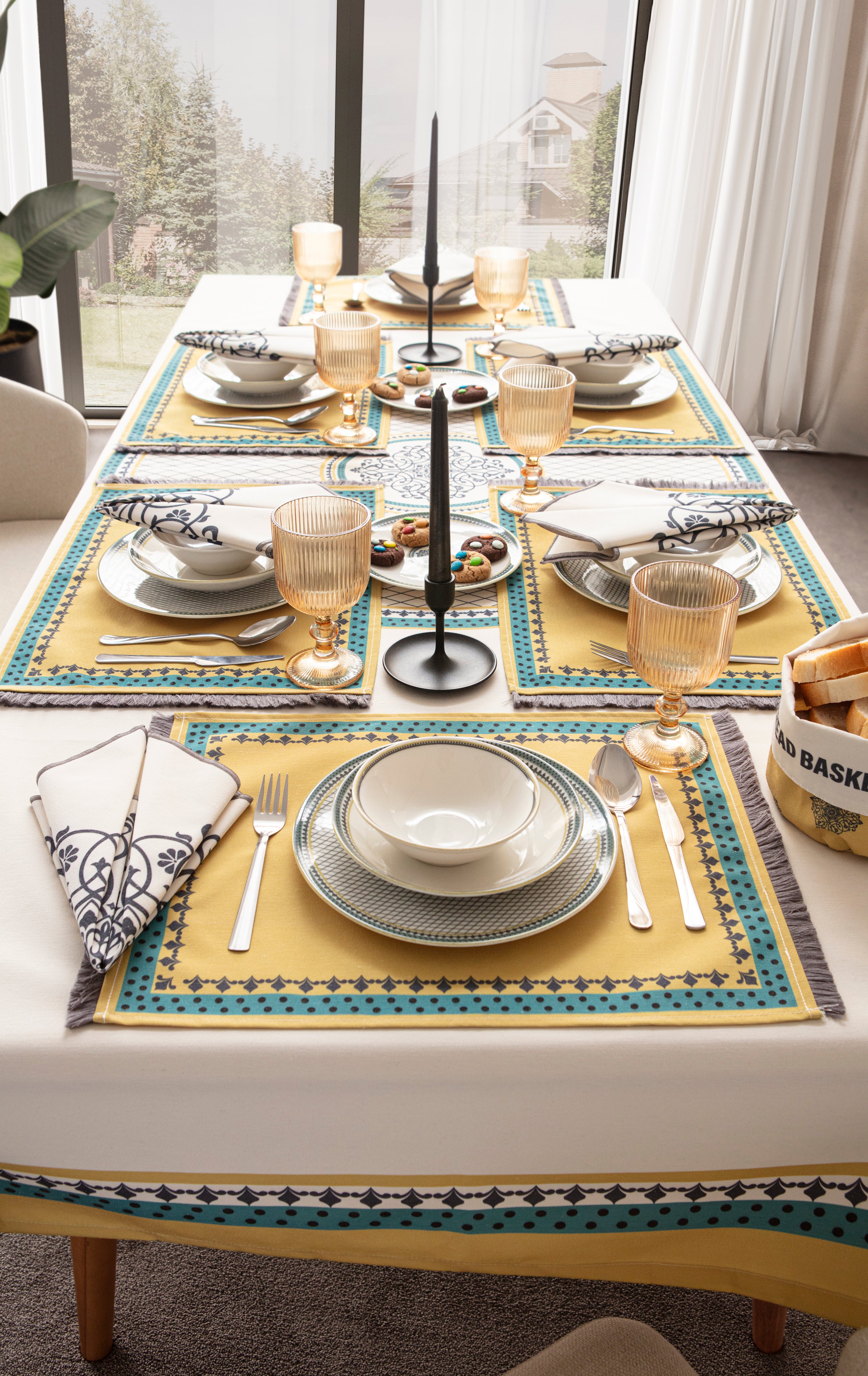 1 adet Masa Örtüsü, 1 adet Runner, 6 adet Amerikan servis, 6 adet Peçete