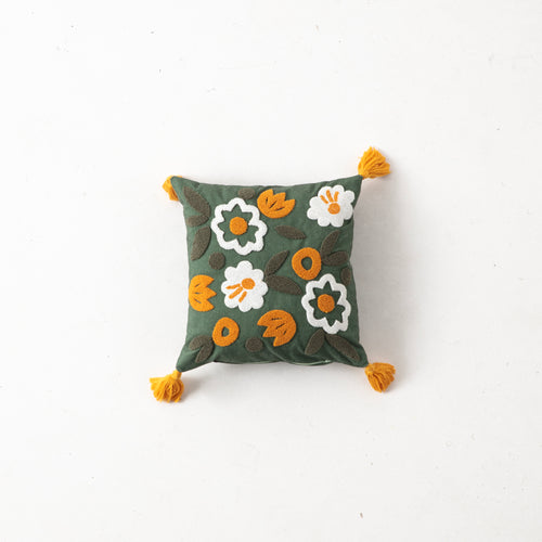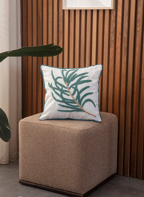 Punch Nakışlı Tropikal Yaprak Desenli İkili Kırlent Seti (Yeşil Püsküllü) -